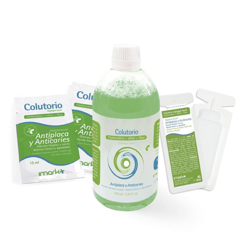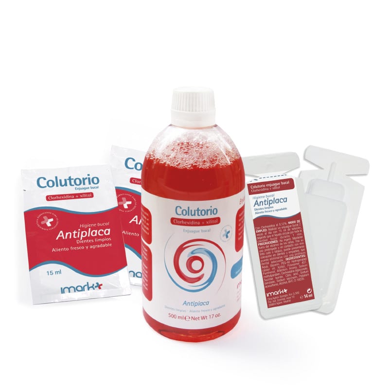 Colutorio antiplacas bucal a base de Clorhexidina. Dientes limpios. Aliento fresco y agradable. Marca Imark.